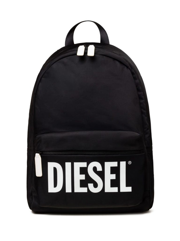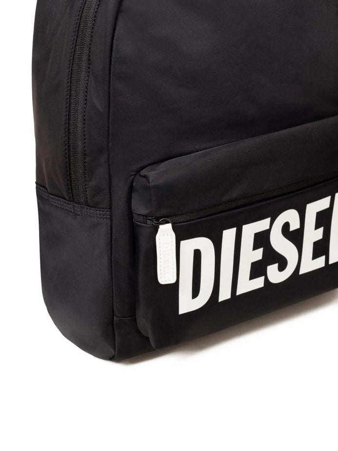 תיק גב שחור מבד ניילון עמיד, עם סגירת רוכסנים, ריפוד בכתפיות ובגב והדפס לוגו דיזל